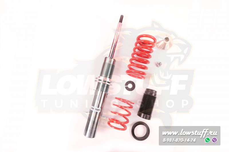 Комплект койловеров LOWSTUFF EVO-I представляет собой начальную линейку винтовых подвесок с одной регулировкой под пружиной.