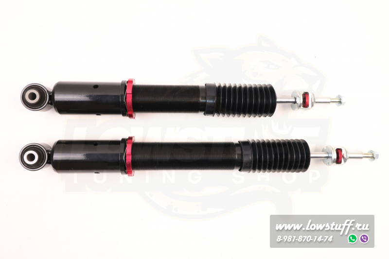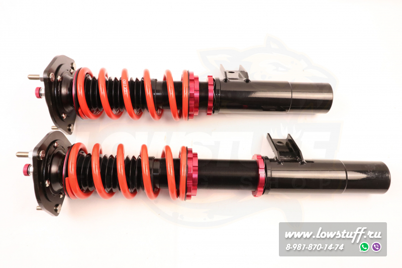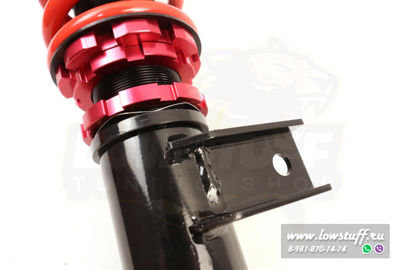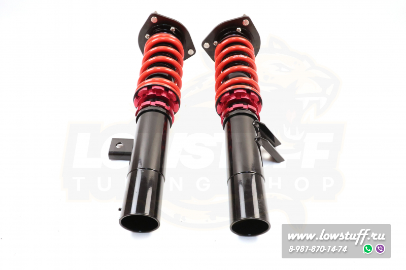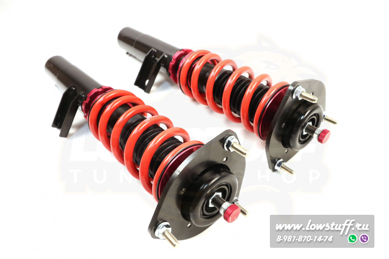 - Максимальная свобода выбора настроек подвески: возможность независимой регулировки высоты автомобиля без изменения преднатяга основной пружины, а так же регулировка отбоя амортизатора