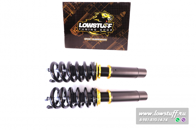фултап койловеры для передней оси LOWSTUFF EVO-III для Audi A4 B8, Audi A5 B8, Audi A6 C7, Audi A7 4G представляет недорогой вариант фултап винтовой подвески, которая обладает раздельными регулировками высоты, преднатяга и жесткости (сжатия/ отбоя амортизатора). Позволяет регулировать дорожный просвет (клиренс) автомобиля в большом диапазоне при этом не меняя преднатяга пружины. 36 щелков на регулировке демпфирования амортизатора позволят вам настроить оптимально подвеску вашего автомобиля. Благодаря таким возможностям настройки подвеска пригодна для гражданской езды по городу, а так же в различных автомобильных дисциплинах любительского уровня дрифт, дрэг, тайм атак, кольцевые гонки.