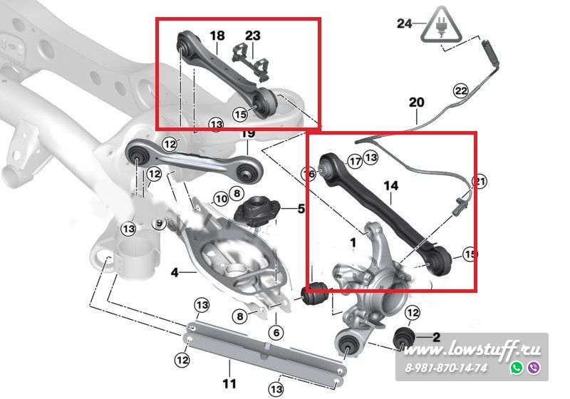 Комплект задних регулируемых рычагов схождения и развала BMW E81, E82, E87, E88, E90, E91, E92, E93