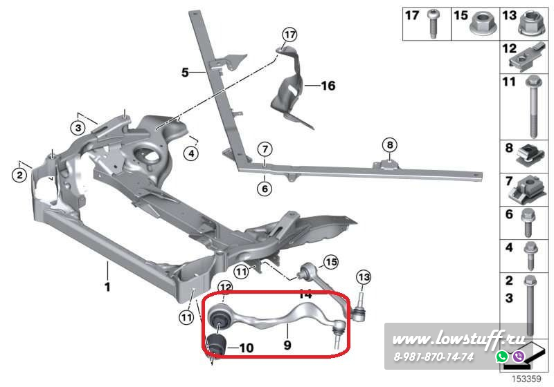 - поперечный рычаг левый передний номера OEM для замены: 31 12 4 036 269, 31 12 6 763 703, 31 12 6 763 707, 31 12 6 769 797, 31 12 6 769 801