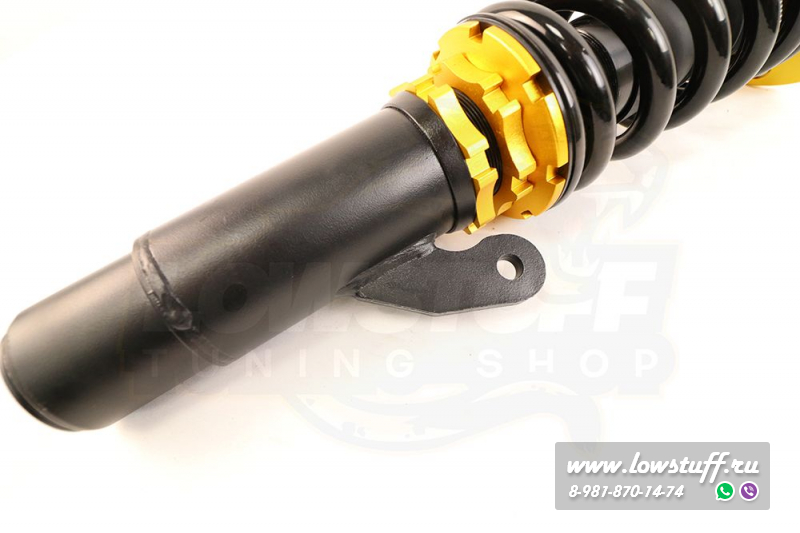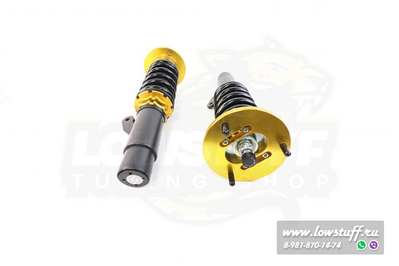 фултап койловеры для передней оси LOWSTUFF EVO-III для BMW E90, E91, E92, E93 xdrive представляет недорогой вариант фултап винтовой подвески, которая обладает раздельными регулировками высоты, преднатяга и жесткости (сжатия/ отбоя амортизатора). Позволяет регулировать дорожный просвет (клиренс) автомобиля в большом диапазоне при этом не меняя преднатяга пружины. 36 щелков на регулировке демпфирования амортизатора позволят вам настроить оптимально подвеску вашего автомобиля. Благодаря таким возможностям настройки подвеска пригодна для гражданской езды по городу, а так же в различных автомобильных дисциплинах любительского уровня дрифт, дрэг, тайм атак, кольцевые гонки.