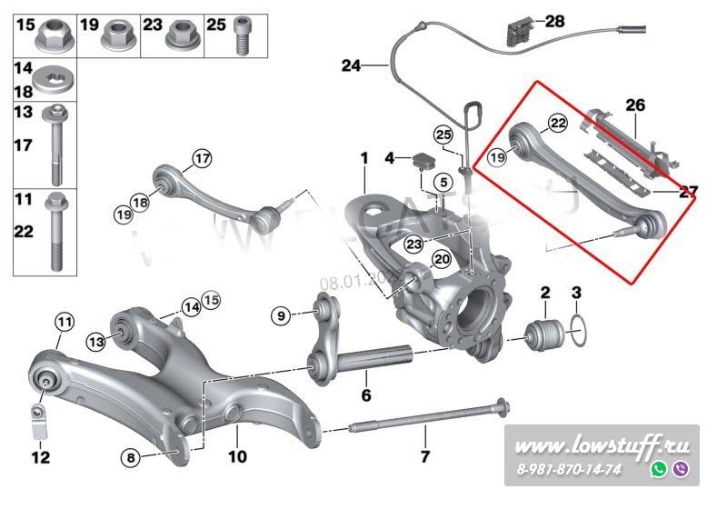 Регулируемые рычаги (тюнинг) задней оси для регулировками развала BMW X5 E70, X6 E71, X5 F15, X6 F16, X5M F85, X6M F86