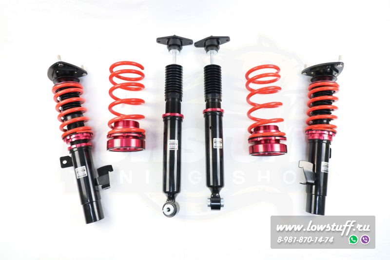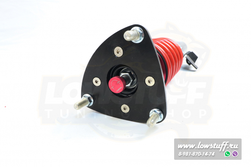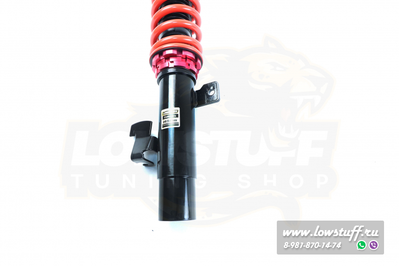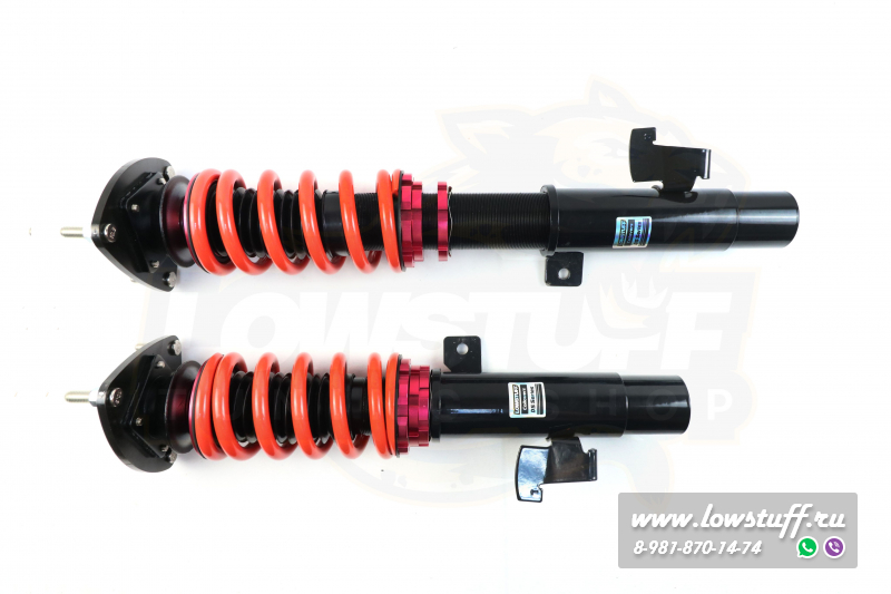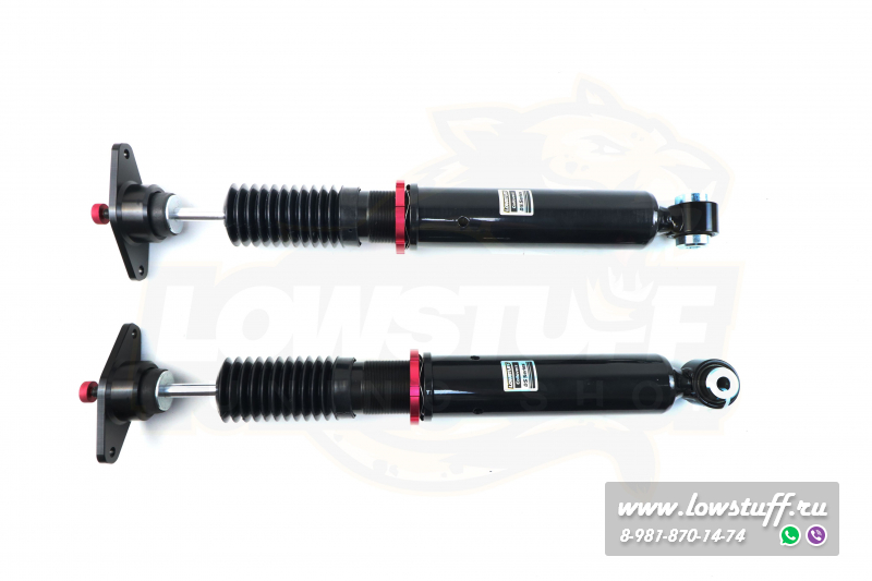 - Максимальная свобода выбора настроек подвески: возможность независимой регулировки высоты автомобиля без изменения преднатяга основной пружины, а так же регулировка отбоя амортизатора