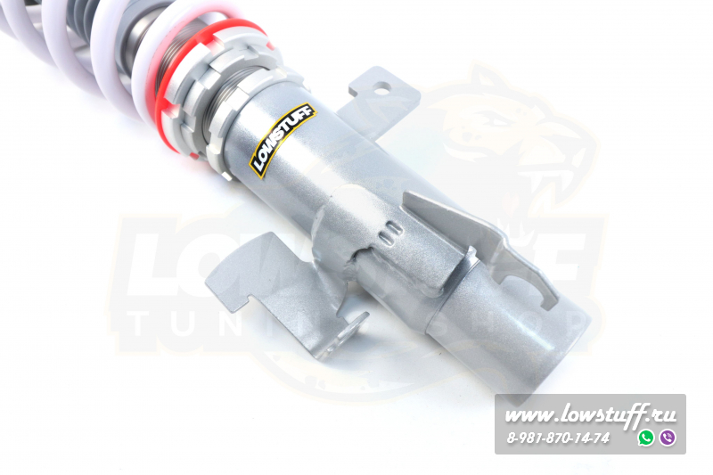 Серия кoйловepов LOWSTUFF EVO-4 - комплект винтовой подвески с фултaп конструкцией имеет независимые настройки высоты (нижний сапог, стакан), преднатяг пружины, сжатие/отбой амортизатора 32 положения. Fulltap конструкция позволяет менять высоту автомобиля ( клиренс) без изменения преднатяга пружины.