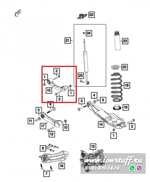 Регулируемые задние верхние развальные рычаги серповидные Jeep Cherokee KL, Chrysler 200