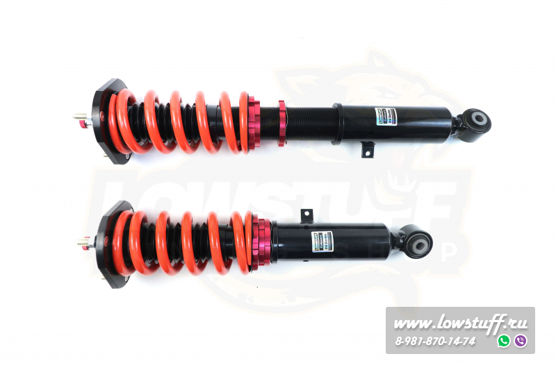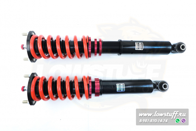 - Максимальная свобода выбора настроек подвески: возможность независимой регулировки высоты автомобиля без изменения преднатяга основной пружины, а так же регулировка отбоя амортизатора