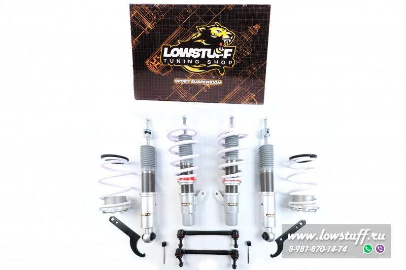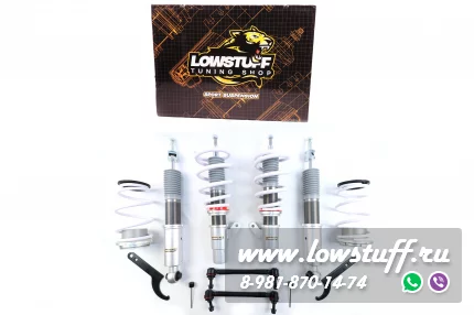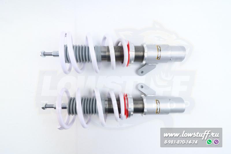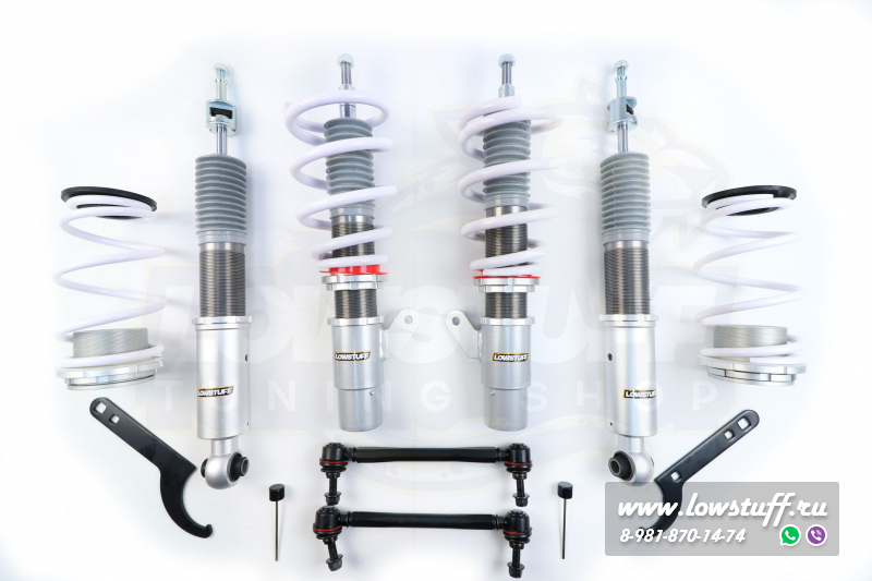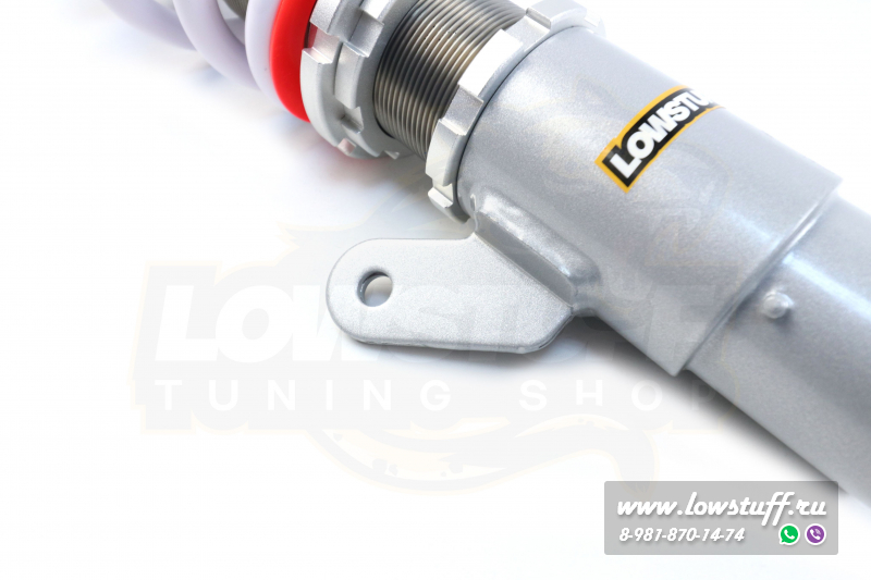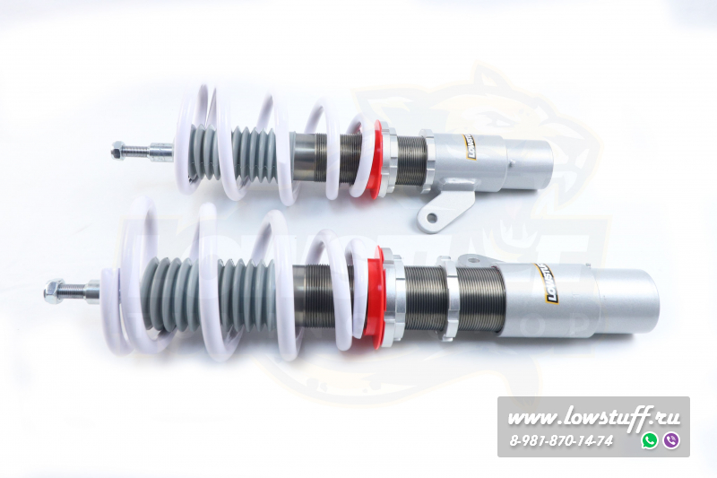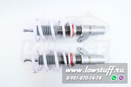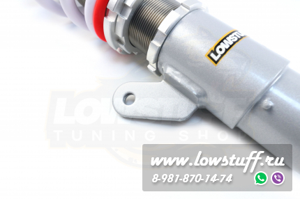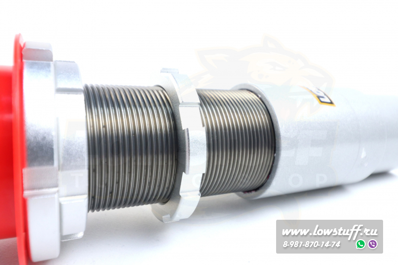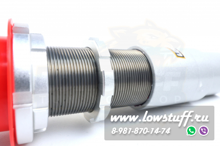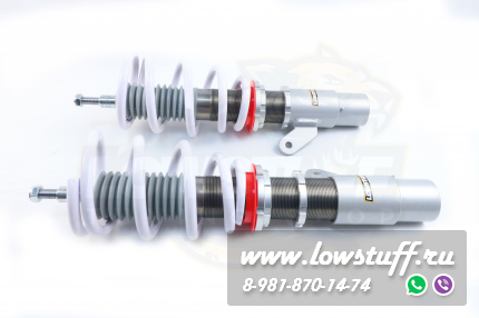Серия кoйловepов LOWSTUFF EVO-4 - комплект винтовой подвески с фултaп конструкцией имеет независимые настройки высоты (нижний сапог, стакан), преднатяг пружины, сжатие/отбой амортизатора 32 положения. Fulltap конструкция позволяет менять высоту автомобиля ( клиренс) без изменения преднатяга пружины.