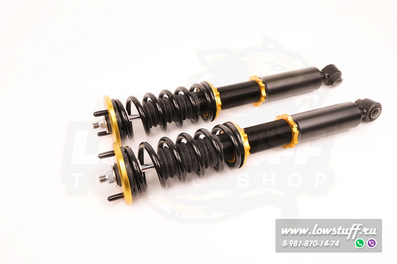фултап койловеры для задней оси LOWSTUFF EVO-III для Nissan Silvia S13, 180sx S13, 200sx S13, 240sx S13, Laurel C33 представляет недорогой вариант фултап винтовой подвески, которая обладает раздельными регулировками высоты, преднатяга и жесткости (сжатия/ отбоя амортизатора). Позволяет регулировать дорожный просвет (клиренс) автомобиля в большом диапазоне при этом не меняя преднатяга пружины. 36 щелков на регулировке демпфирования амортизатора позволят вам настроить оптимально подвеску вашего автомобиля. Благодаря таким возможностям настройки подвеска пригодна для гражданской езды по городу, а так же в различных автомобильных дисциплинах любительского уровня дрифт, дрэг, тайм атак, кольцевые гонки.