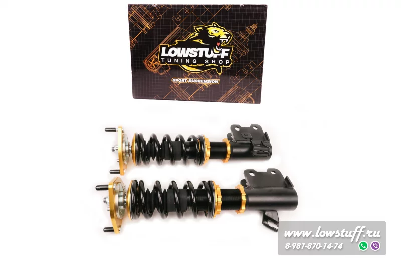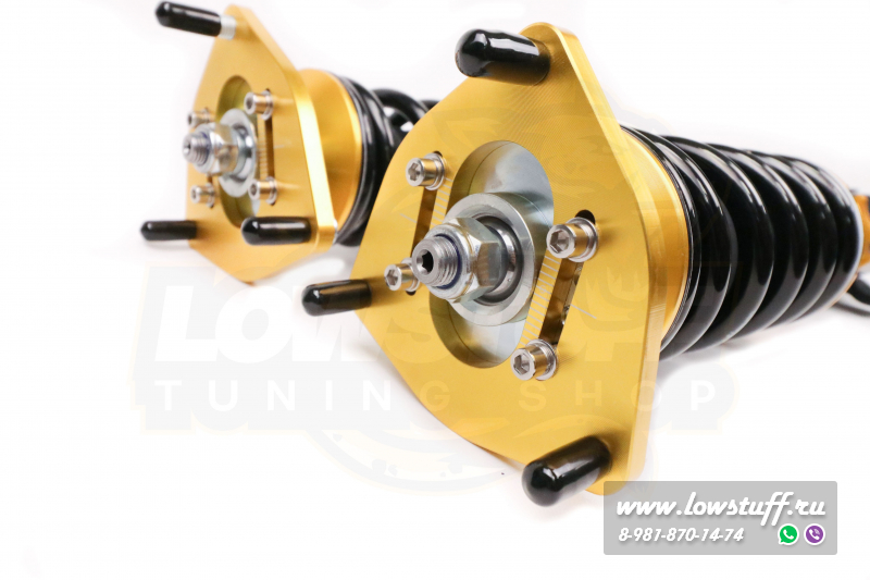 фултап койловеры для передней оси LOWSTUFF EVO-III для Nissan Silvia S14, S15 представляет недорогой вариант фултап винтовой подвески, которая обладает раздельными регулировками высоты, преднатяга и жесткости (сжатия/ отбоя амортизатора). Позволяет регулировать дорожный просвет (клиренс) автомобиля в большом диапазоне при этом не меняя преднатяга пружины. 36 щелков на регулировке демпфирования амортизатора позволят вам настроить оптимально подвеску вашего автомобиля. Благодаря таким возможностям настройки подвеска пригодна для гражданской езды по городу, а так же в различных автомобильных дисциплинах любительского уровня дрифт, дрэг, тайм атак, кольцевые гонки.