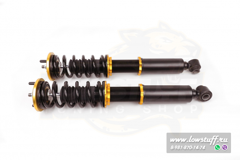 фултап койловеры для задней оси LOWSTUFF EVO-III для Nissan Silvia S14, S15 представляет недорогой вариант фултап винтовой подвески, которая обладает раздельными регулировками высоты, преднатяга и жесткости (сжатия/ отбоя амортизатора). Позволяет регулировать дорожный просвет (клиренс) автомобиля в большом диапазоне при этом не меняя преднатяга пружины. 36 щелков на регулировке демпфирования амортизатора позволят вам настроить оптимально подвеску вашего автомобиля. Благодаря таким возможностям настройки подвеска пригодна для гражданской езды по городу, а так же в различных автомобильных дисциплинах любительского уровня дрифт, дрэг, тайм атак, кольцевые гонки.