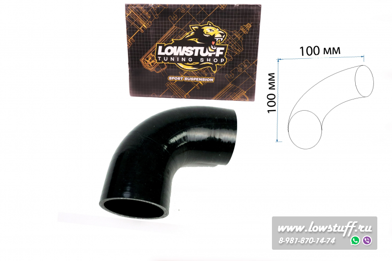 Патрубок силиконовый угол 90 градусов диаметр Ф 102 мм длина L 100 мм черный