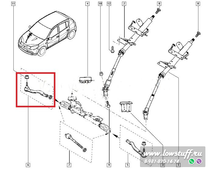 Наконечник рулевой тяги правый Renault Logan I, Sandero I, Lada Largus до 2014 г.в