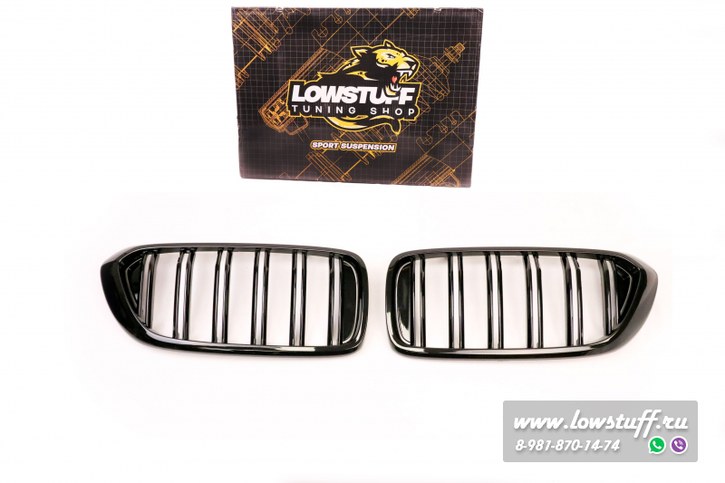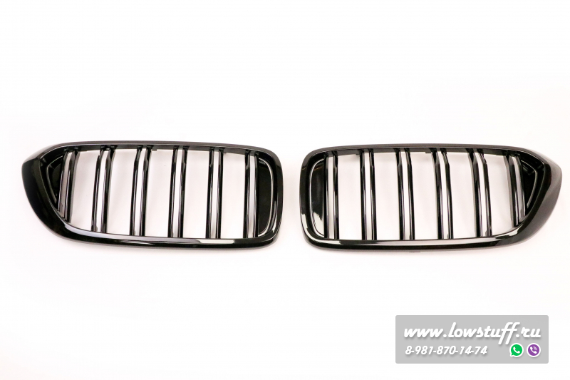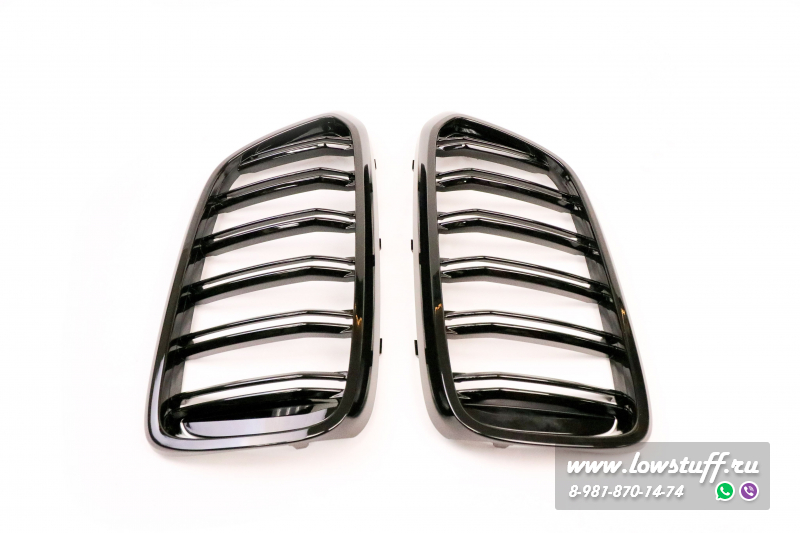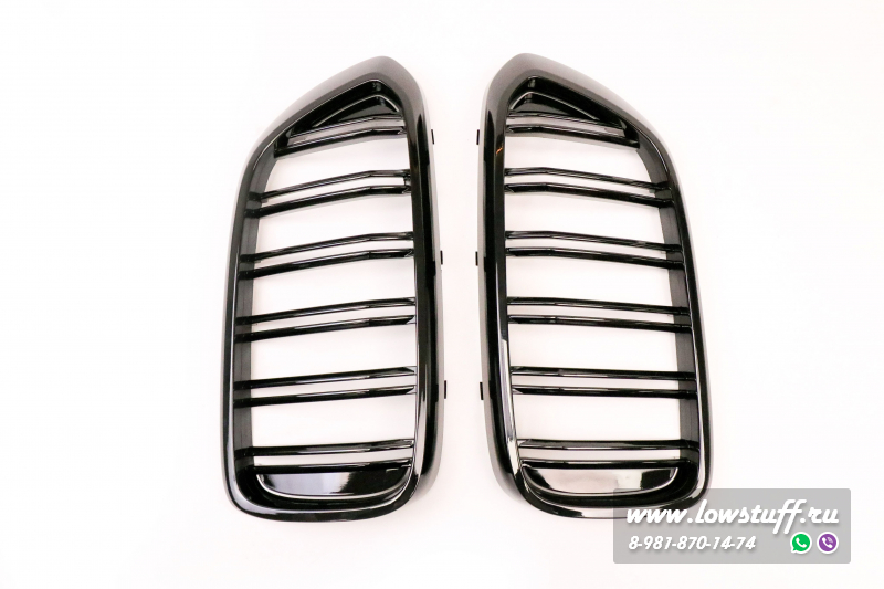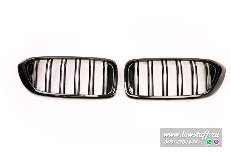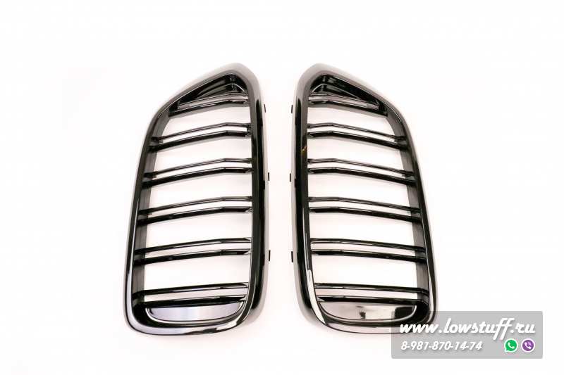 Решетки радиатора ноздри BMW G32 GRAND TURISMO SPORT 2016-2020 в стиле M6 ноздри сдвоенные горбатые цвет глянцевый черный