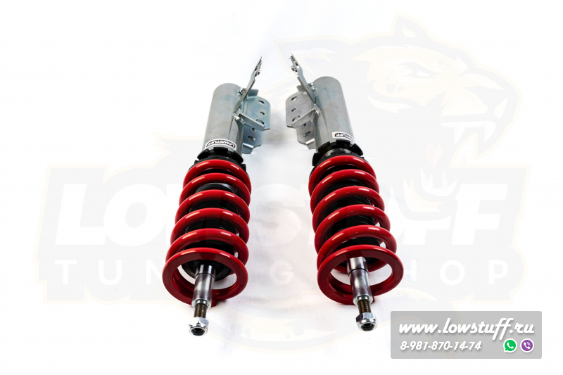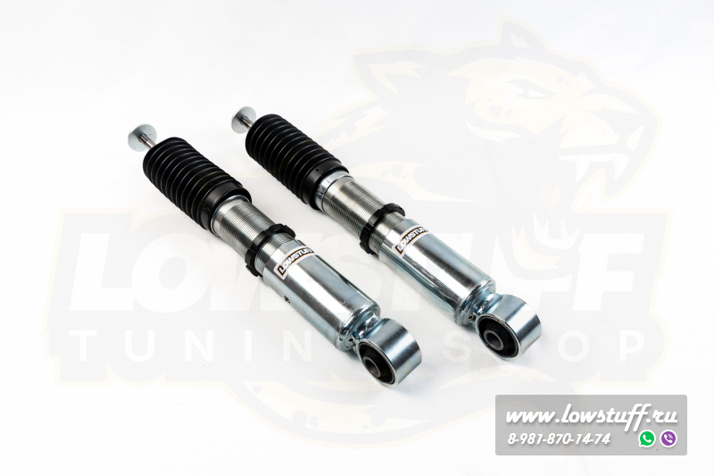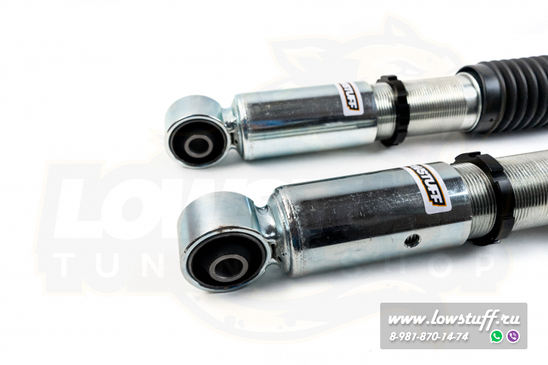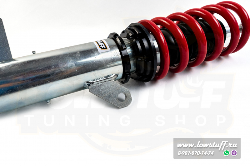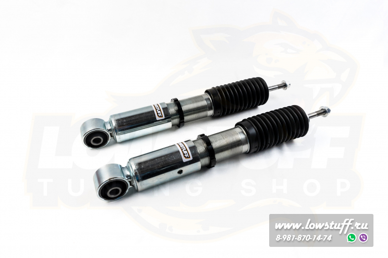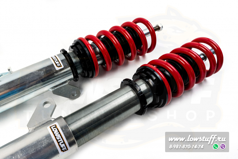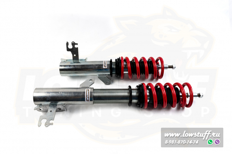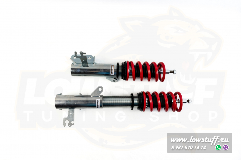 Комплект койловеров LOWSTUFF EVO-II представляет собой более продвинутую версию недорогих винтовых подвесок с независимой регулировкой высоты и преднатяга. В отличии от известных всем Jom Redline, TA-TECHNIX позволяет регулировать высоту автомобиля непосредственно в нижнем сапоге, без изменения преднатяга пружины - средняя ступень между бюджетными вариантами и койлами фултап конструкции.