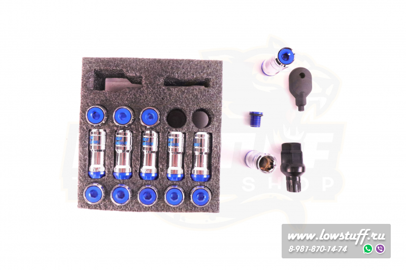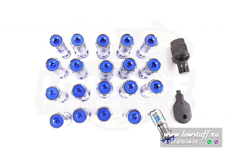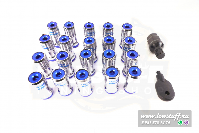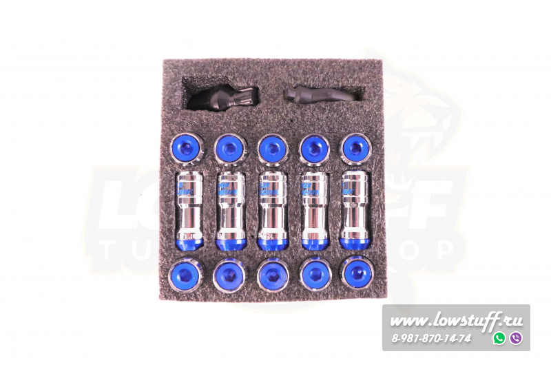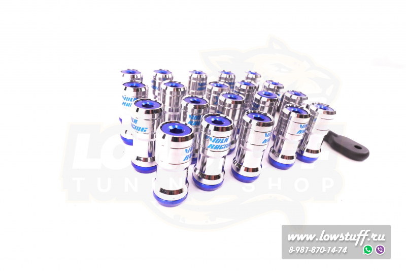 Спортивные колесные гайки Volk Racing Formula M12*1.5 c секретками синий центр комплект 20 штук