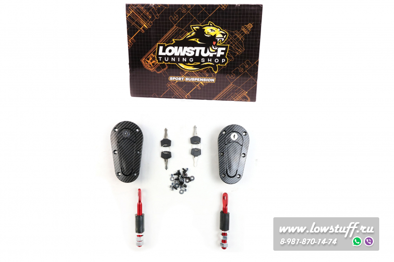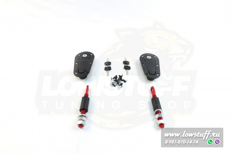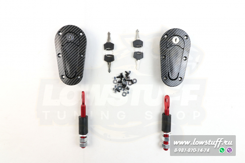 Спортивные замки капота D1 style аквапринт карбон с ключом - обеспечивают надежную фиксацию капота и препятствуют его раскрытию в ходе движение на высокой скорости.