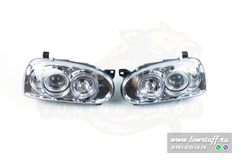 VW Golf 3 фары головного света прозрачное стекло хром отражатель с линзой и поворотником LOWSTUFF HLVWG3CHRLENS