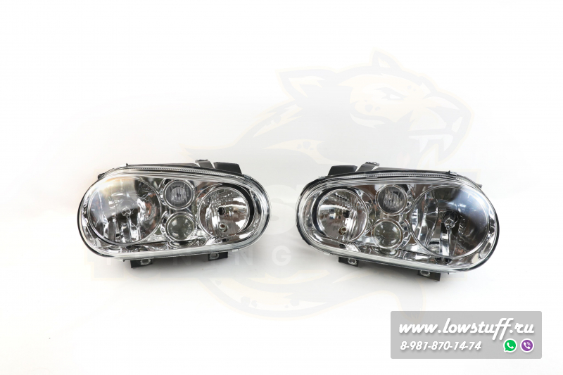 Передние фары головного света для VW Golf 4 прозрачное стекло хром отражатель с противотуманками