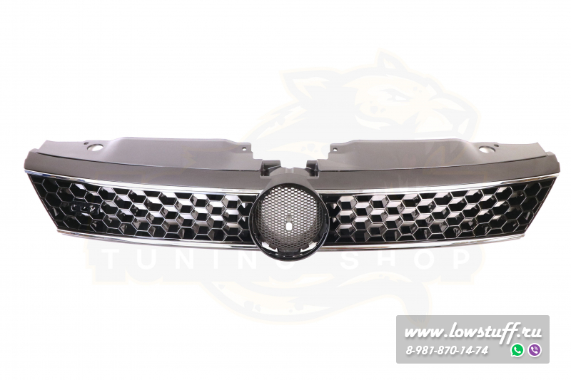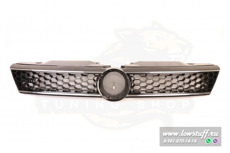 VW Jetta 6 2011-2014 GLI решетка радиатора черная глянцевая соты с хром полосами с отверстием для значка