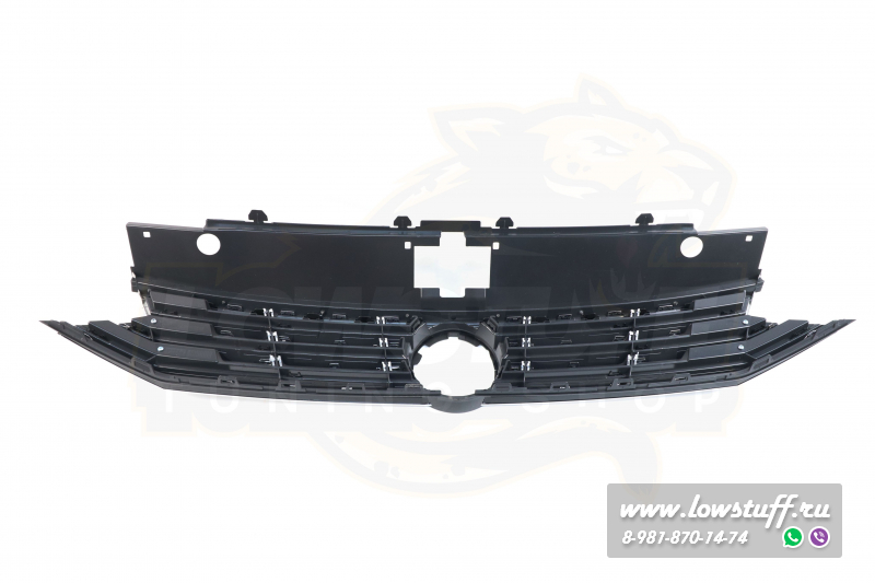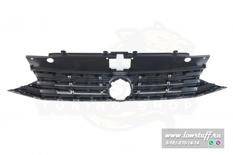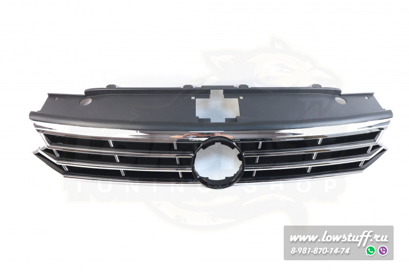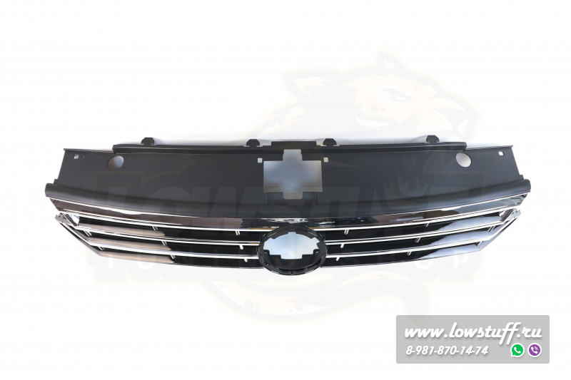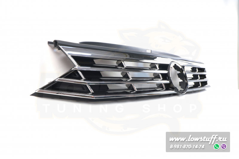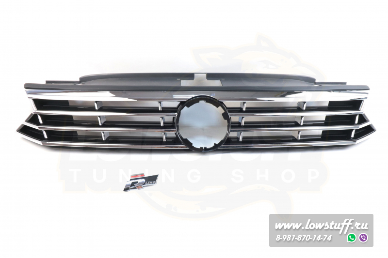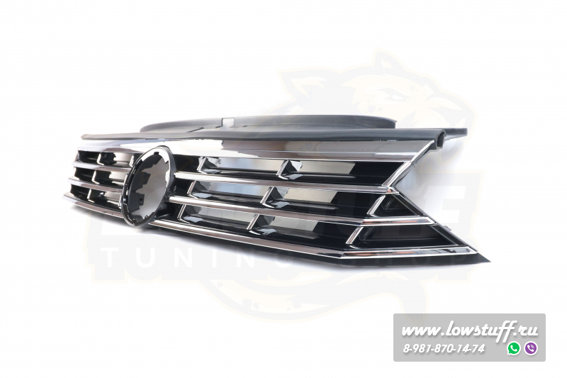VW Passat B8 R Line решетка радиатора черный глянец с хром полосками c отверстием для значка VW