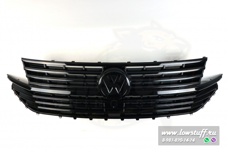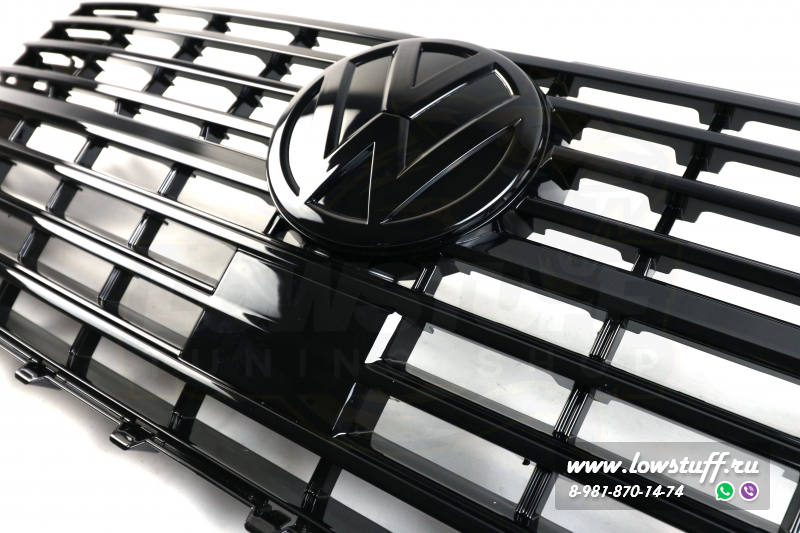 Решетка радиатора VW T6.1 Transporter, VW T6.1 Caravelle, VW T6.1 Multivan черная глянцевая